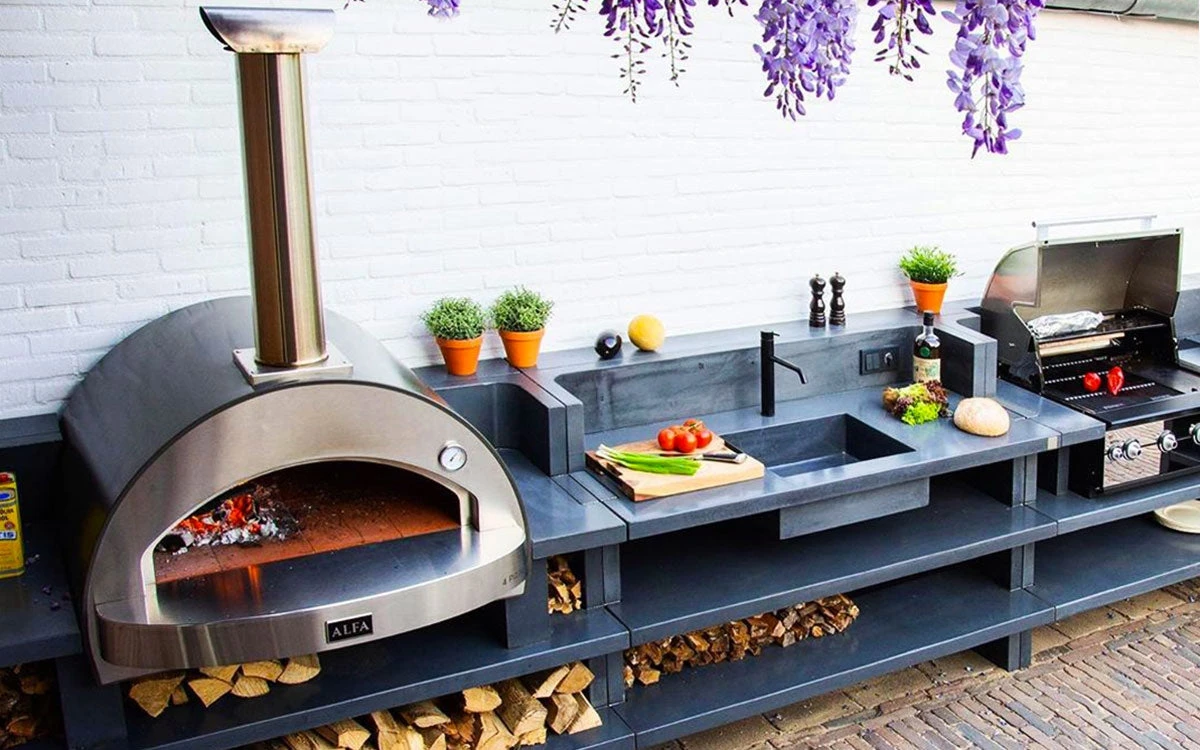 Ha dimensioni e bocca grande per cucinare 4 pizze in 90 secondi e 4 kg di pane ad infornata. Forno a legna da giardino, posizionabile anche su balcone o su terrazzo. Utilizza il piano refrattario dei forni professionali.