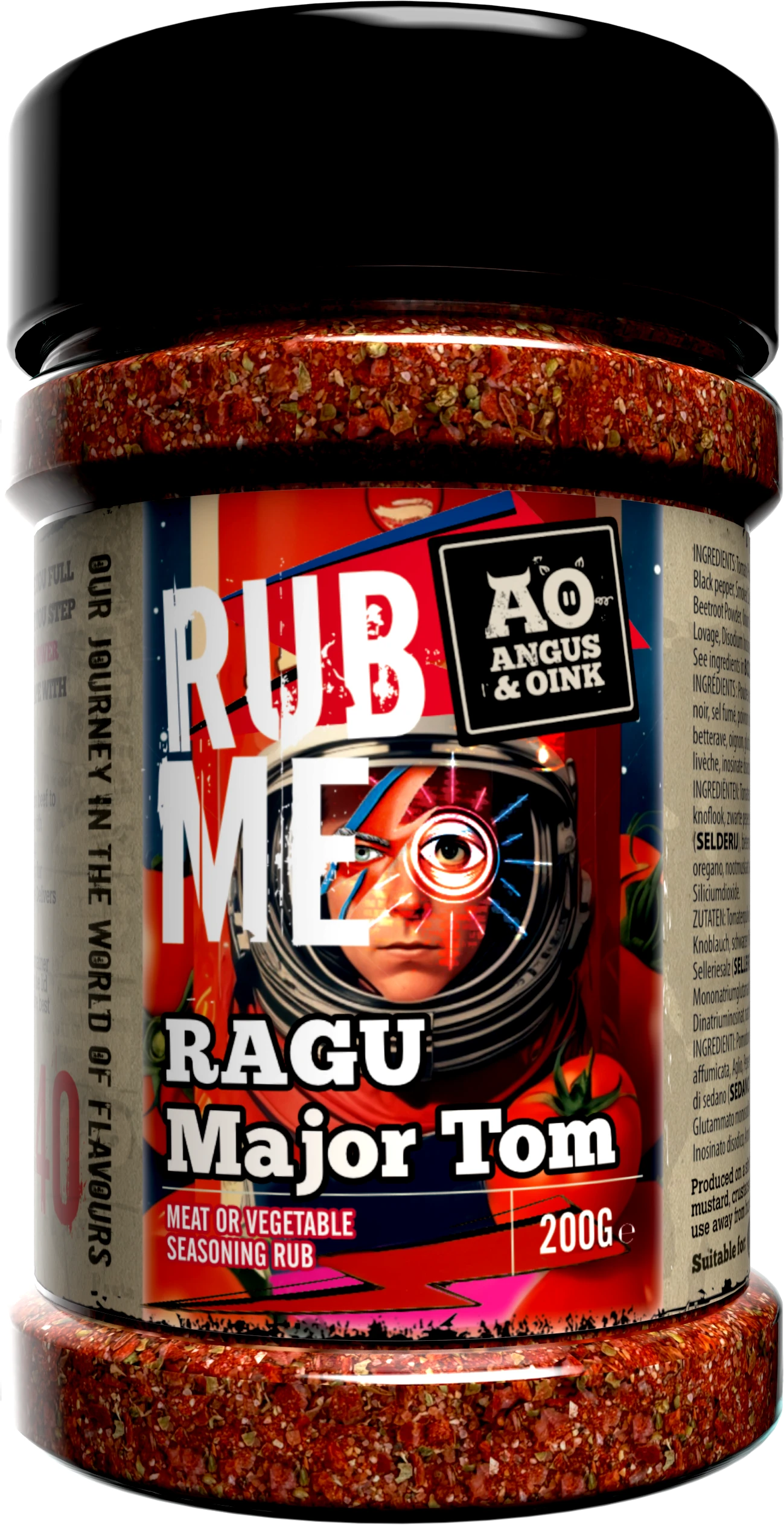 Preparati a lanciarti in un mondo di sapori con l’ultimo rub di casa Angus & Oink! Major Tom Ragu Seasoing (si hai letto bene, RAGU’). Ispirato ai migliori piatti di pasta d’Italia, alle lasagne di ogni nonna italiana e alle fantastiche MEATBALL italoamericane.