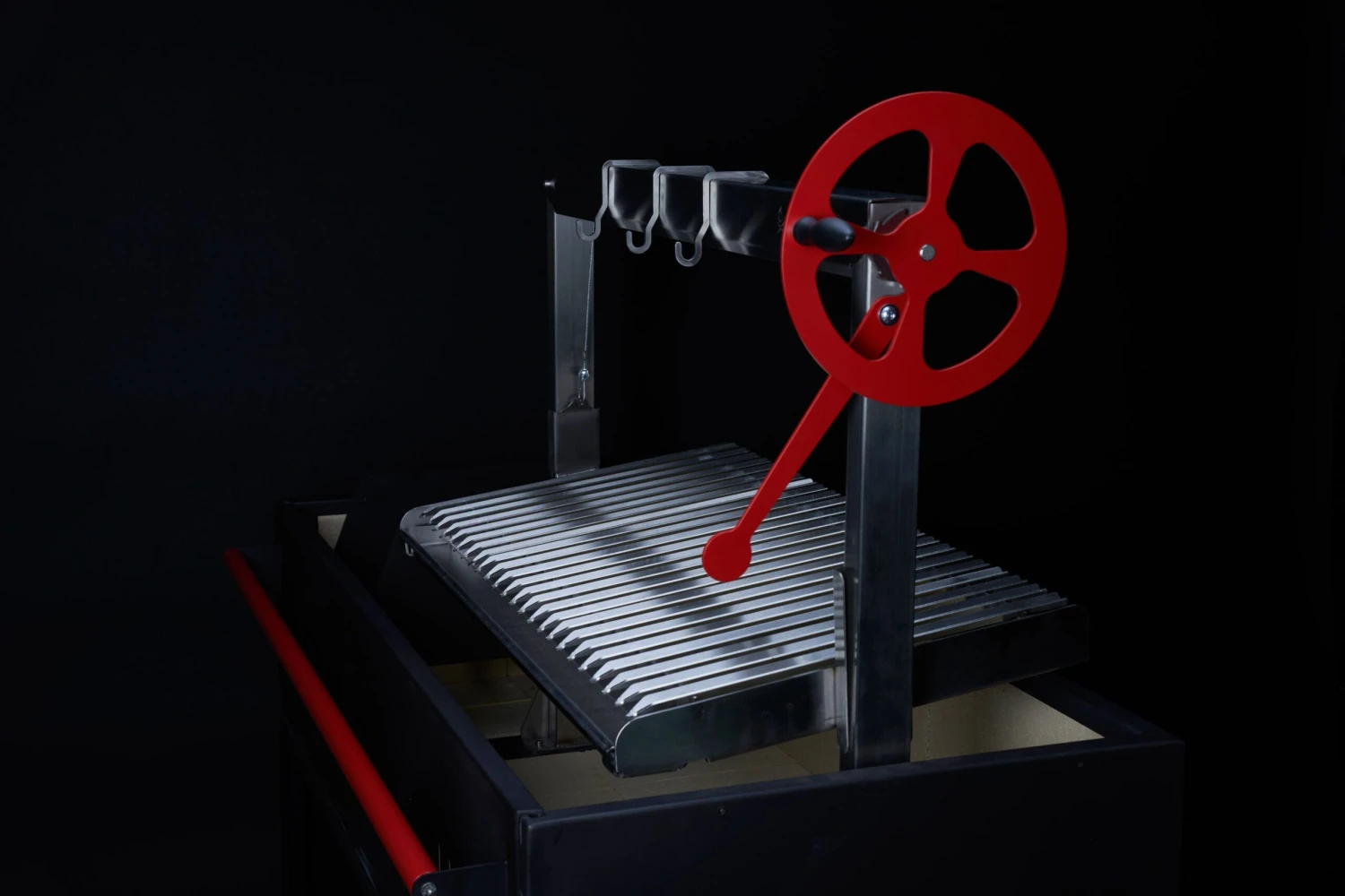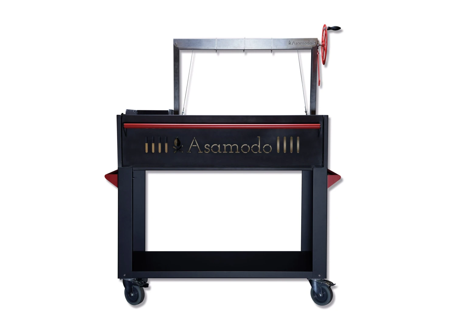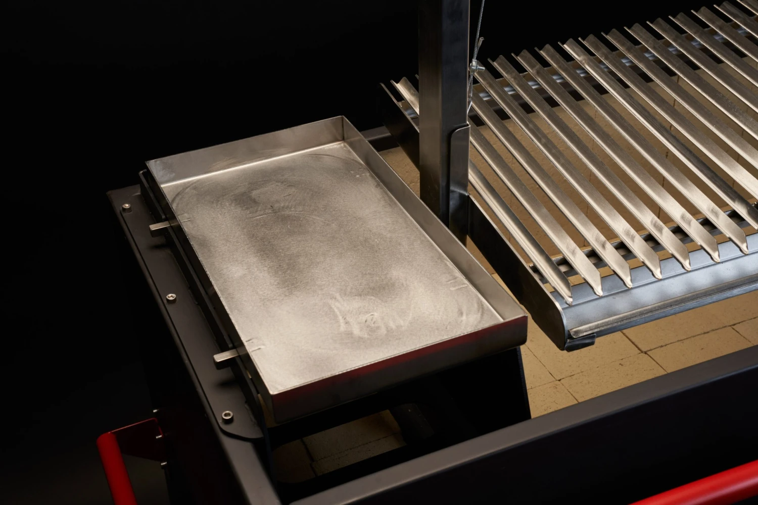 Il cuore del Brasa di Asamodo è il telaio regolabile in altezza con una larghezza totale di 75 cm. É possibile inserire diversi accessori sul telaio, con una larghezza di 25 cm. In questo modo, il Brasa può trasformarsi da griglia per asado a piastra.