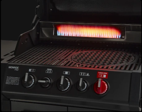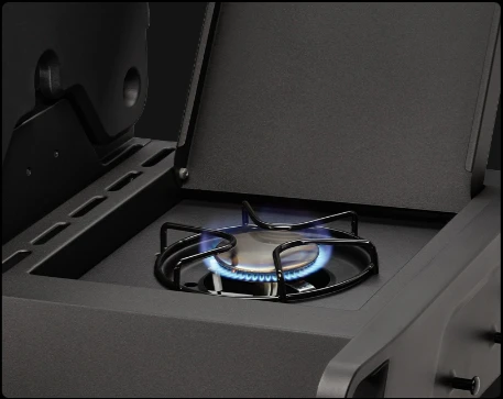 - INFRARED BACK BURNER: bruciatore posteriore ad infrarossi perfetto per cottura con girarrosto e pizza.
