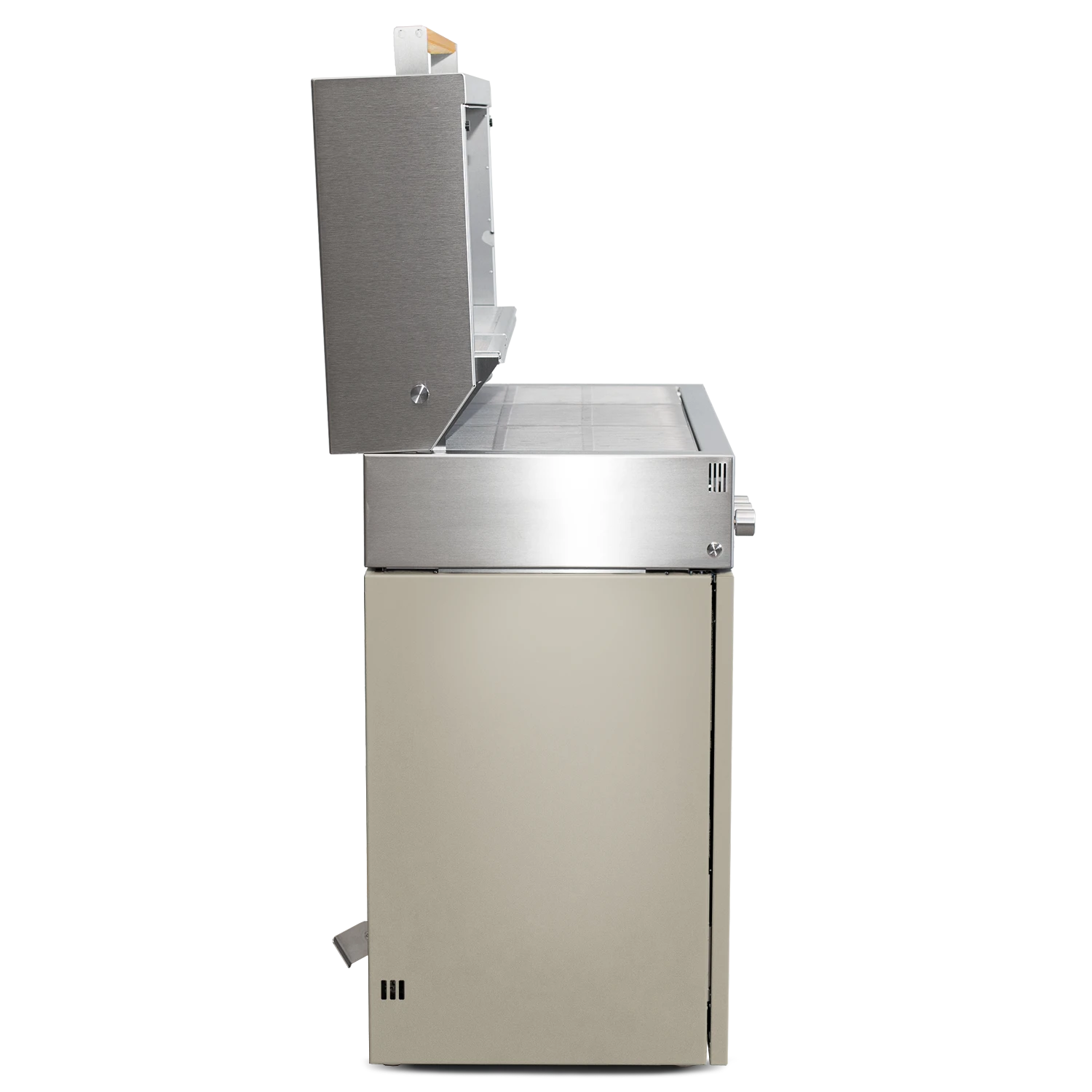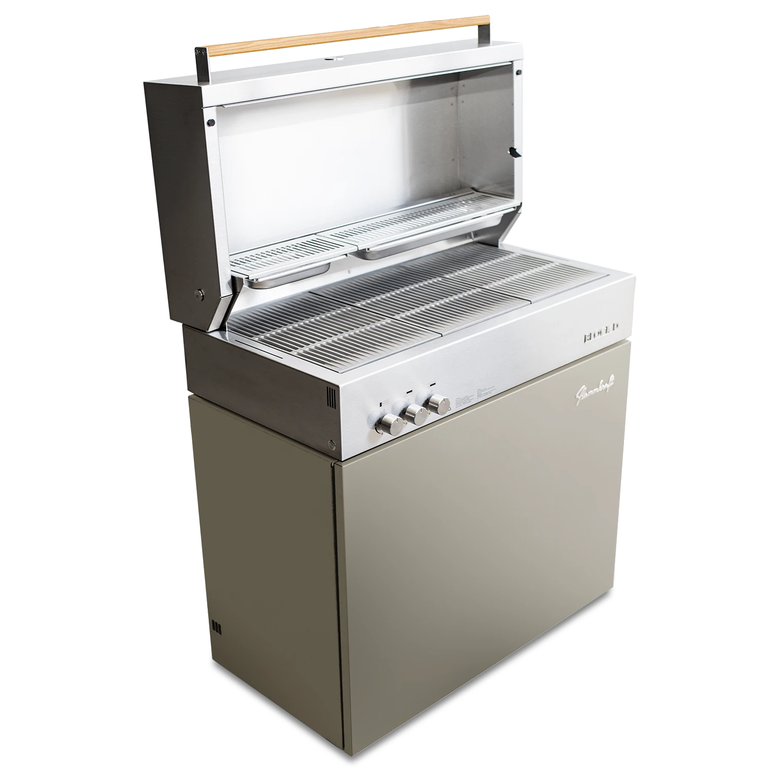 - Compatibile con cucine da esterno: Il modulo del barbecue del Block D (Gen. 5) può essere staccato dal sottofondo ed essere facilmente ricollegato. Un raccordo a vite a 4 punti fissa il modulo. Il raccordo a vite è allentabile e nuovamente fissabile in pochi secondi. Ciò semplifica il trasporto e l’impiego mobile per i nostri clienti professionali. Inoltre, il Block D (Gen. 5) offre una flessibilità completa nel caso in cui in un secondo momento tu desideri realizzare una cucina esterna personalizzata: Tecnicamente il modulo del barbecue è uguale alla versione integrata ed è pertanto compatibile al 100% per il montaggio in una cucina esterna.