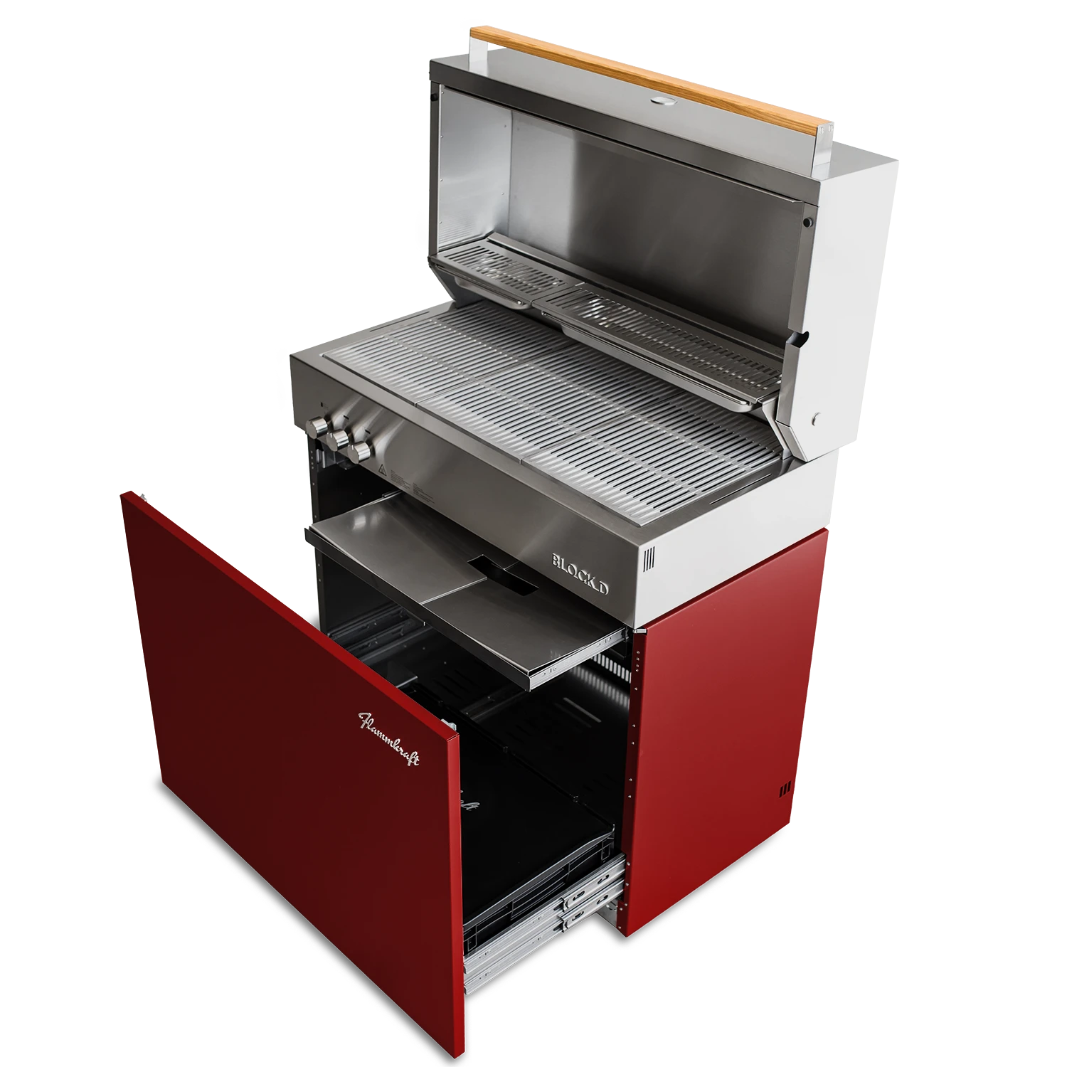 • Colori: I barbecue Flammkraft sono immutabili nel loro design e unici nel funzionamento.​ Nel Block D (Gen. 5) puoi scegliere tra le esclusive sette varianti di colore.​ Le tonalità di colore a bassa opacità vengono sostenute da un sottofondo in acciaio inox. Visivamente, il classico senza tempo resta dunque bello nel tempo non solo in superficie.