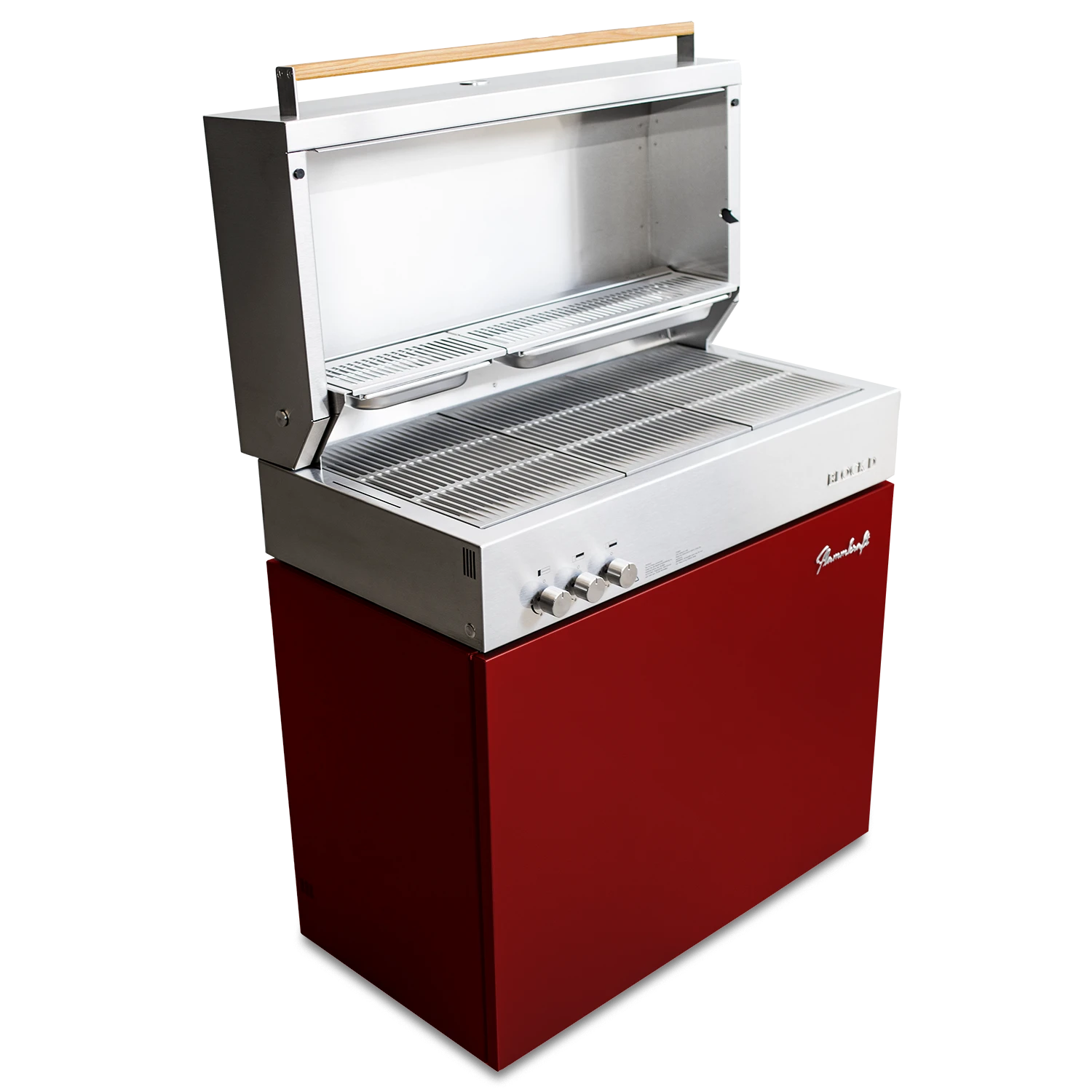 • Compatibile con cucine da esterno​: Il modulo del barbecue del Block D (Gen. 5) può essere staccato dal sottofondo ed essere facilmente ricollegato. Un raccordo a vite a 4 punti fissa il modulo.​ Il raccordo a vite è allentabile e nuovamente fissabile in pochi secondi. Ciò semplifica il trasporto e l’impiego mobile per i nostri clienti professionali. Inoltre, il Block D (Gen. 5) offre una flessibilità completa nel caso in cui in un secondo momento tu desideri realizzare una cucina esterna personalizzata: Tecnicamente il modulo del barbecue è uguale alla versione integrata ed è pertanto compatibile al 100% per il montaggio in una cucina esterna.