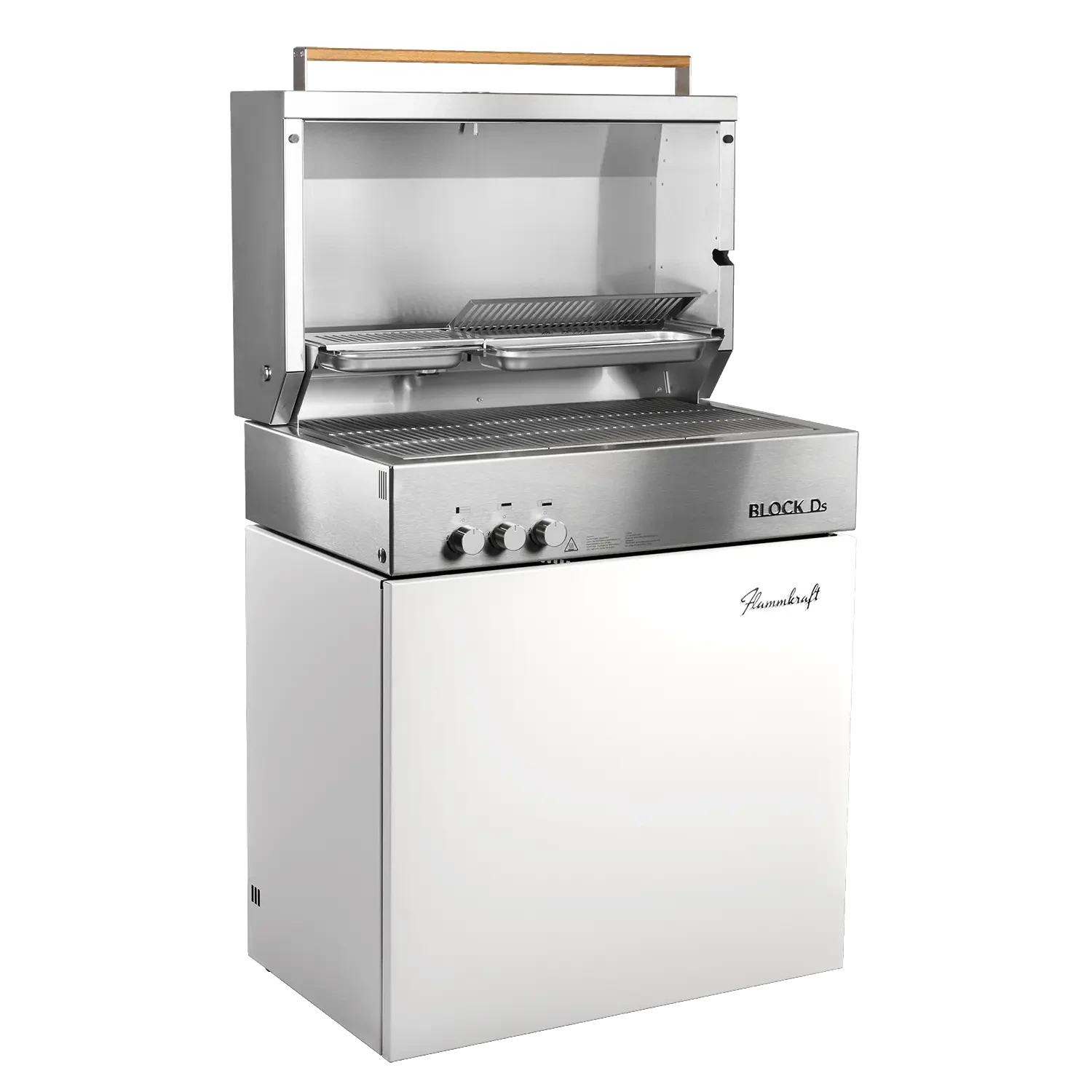 - OfenDock: L’OfenDock, sviluppato appositamente da Flammkraft, rende il Block Ds estremamente versatile. Perfettamente coordinato con l’innovativo sistema di bruciatori, il secondo livello di cottura offre numerose possibilità — perfetto per chi ha grandi progetti, anche in poco spazio.