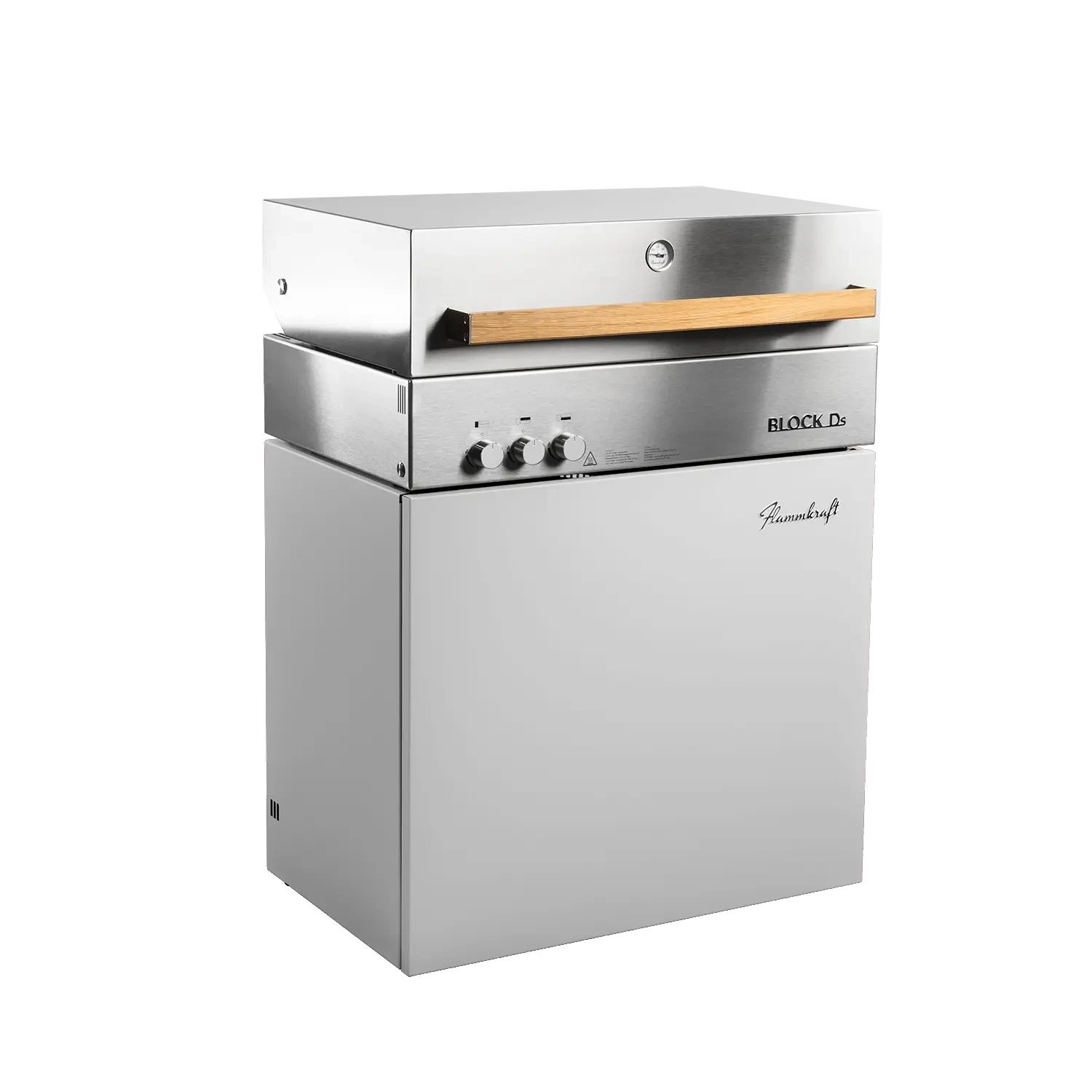 - OfenDock: L’OfenDock, sviluppato appositamente da Flammkraft, rende il Block Ds estremamente versatile. Perfettamente coordinato con l’innovativo sistema di bruciatori, il secondo livello di cottura offre numerose possibilità — perfetto per chi ha grandi progetti, anche in poco spazio.