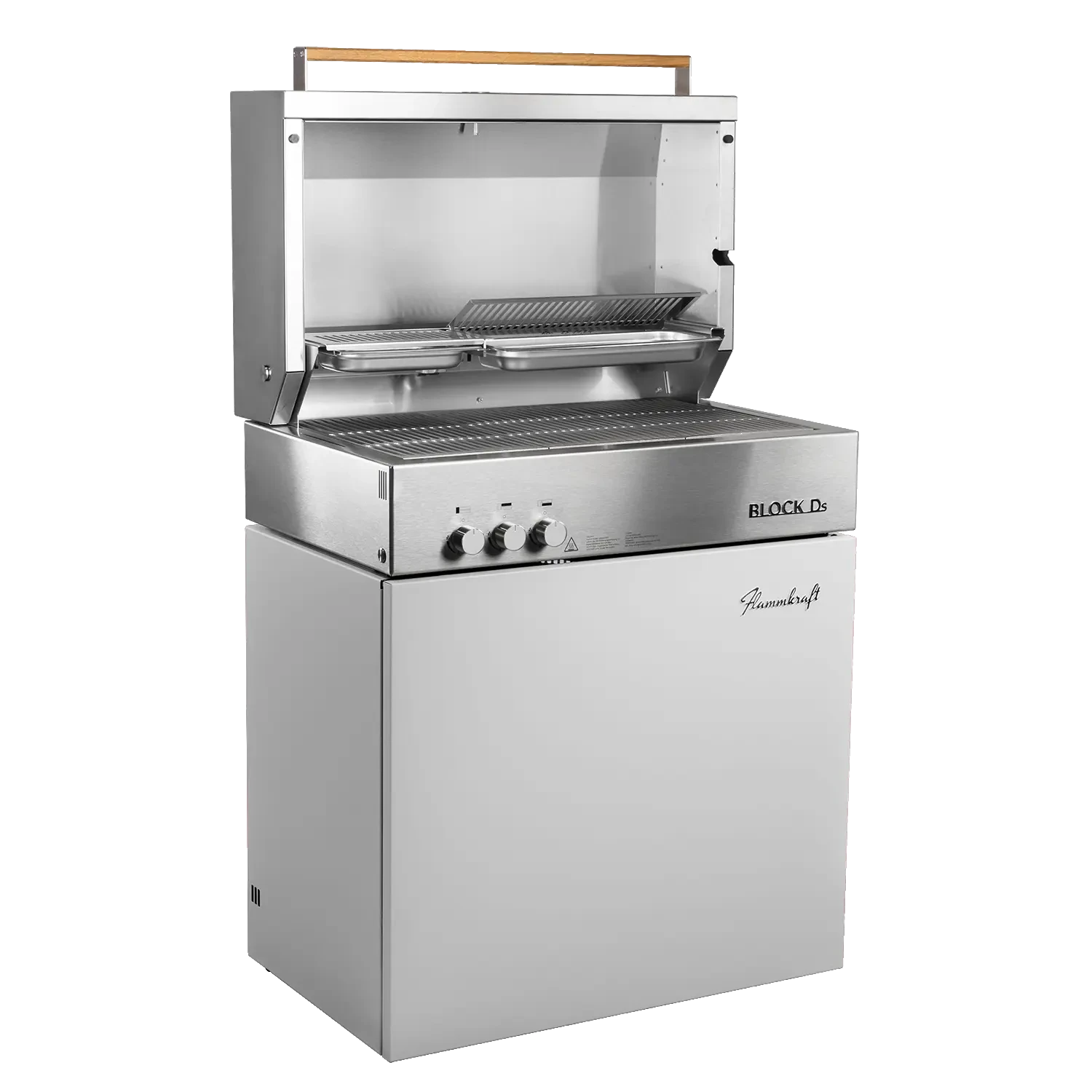 - Compatibile con cucine da esterno: Il modulo del barbecue del Block Ds (Gen. 5) può essere staccato dal sottofondo ed essere facilmente ricollegato. Un raccordo a vite a 4 punti fissa il modulo. Il raccordo a vite è allentabile e nuovamente fissabile in pochi secondi. Ciò semplifica il trasporto e l’impiego mobile per i nostri clienti professionali. Inoltre, il Block Ds (Gen. 5) offre una flessibilità completa nel caso in cui in un secondo momento tu desideri realizzare una cucina esterna personalizzata: Tecnicamente il modulo del barbecue è uguale alla versione integrata ed è pertanto compatibile al 100% per il montaggio in una cucina esterna.