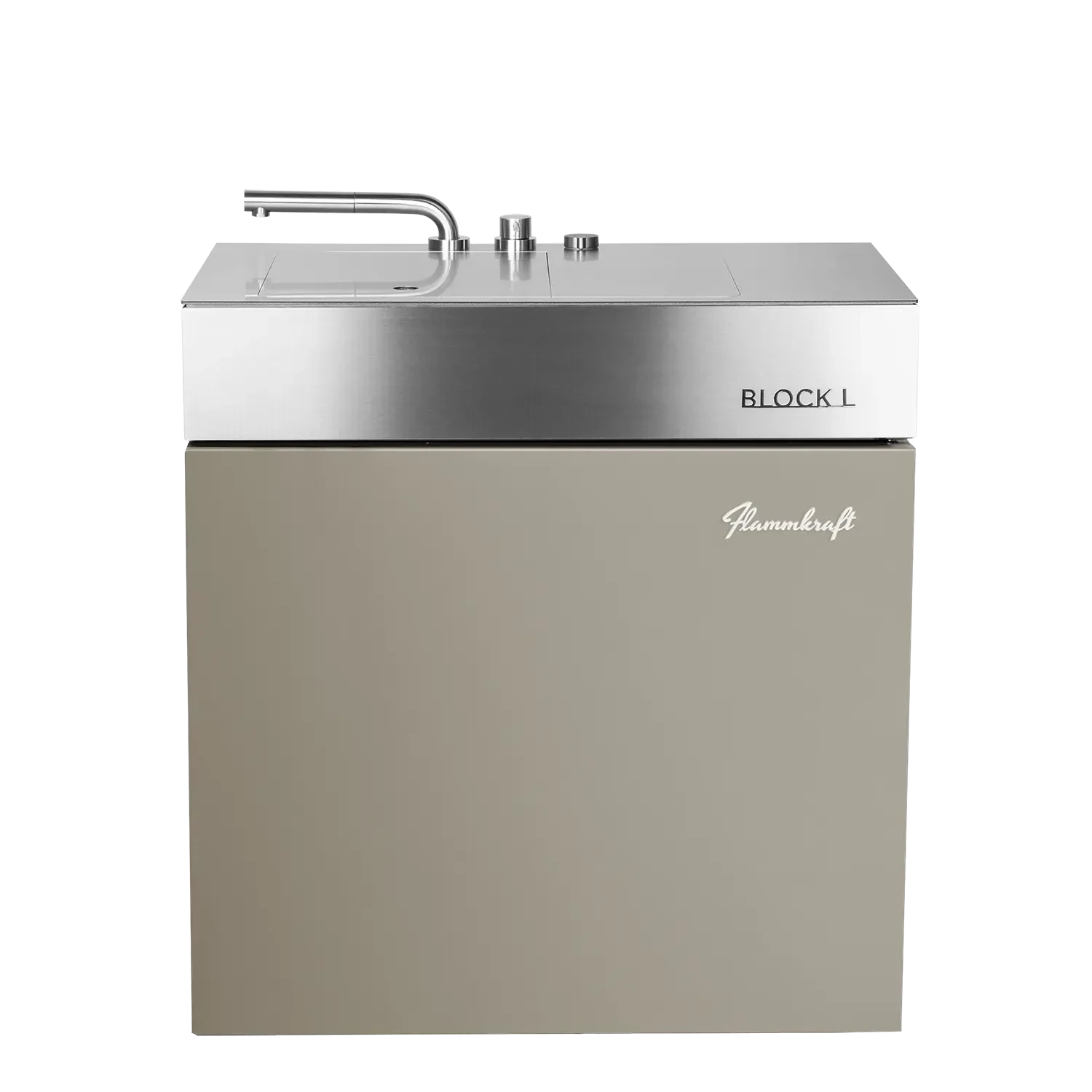 - Colori: Con la sua multifunzionalità, il Block L completa armoniosamente il concetto di cucina da esterno modulare della serie Block. Il principio della struttura solida, della massima qualità di produzione Made in Germany e del design dalle linee pulite viene qui applicato in modo coerente. In linea con gli altri modelli della serie Block, il Block L è disponibile in sette colori opachi profondi.