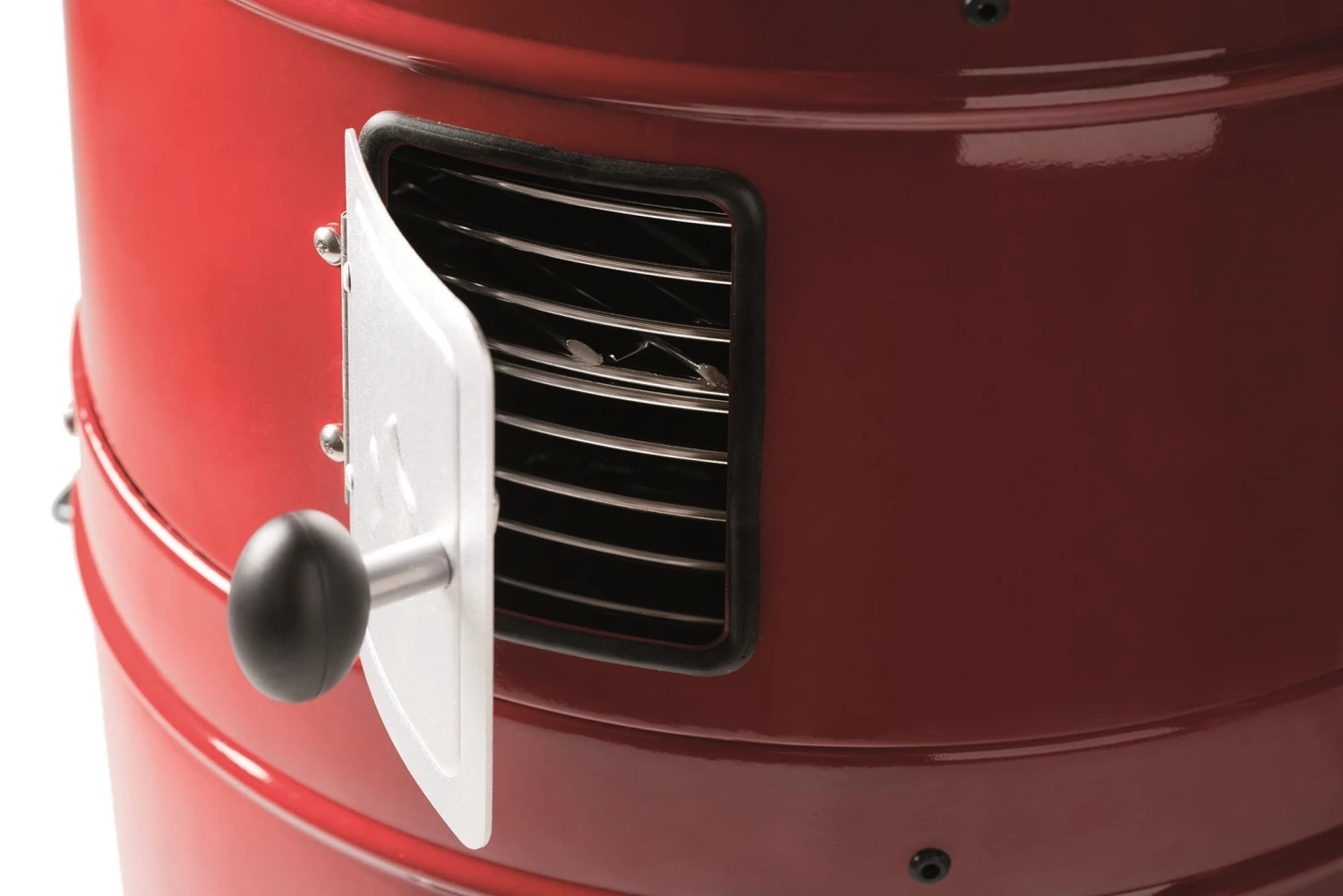 - Acciaio smaltato: L’esterno in acciaio smaltato aiuta a mantenere il prezioso calore all’interno dello smoker e a consentire il flusso d’aria all’interno della camera di combustione