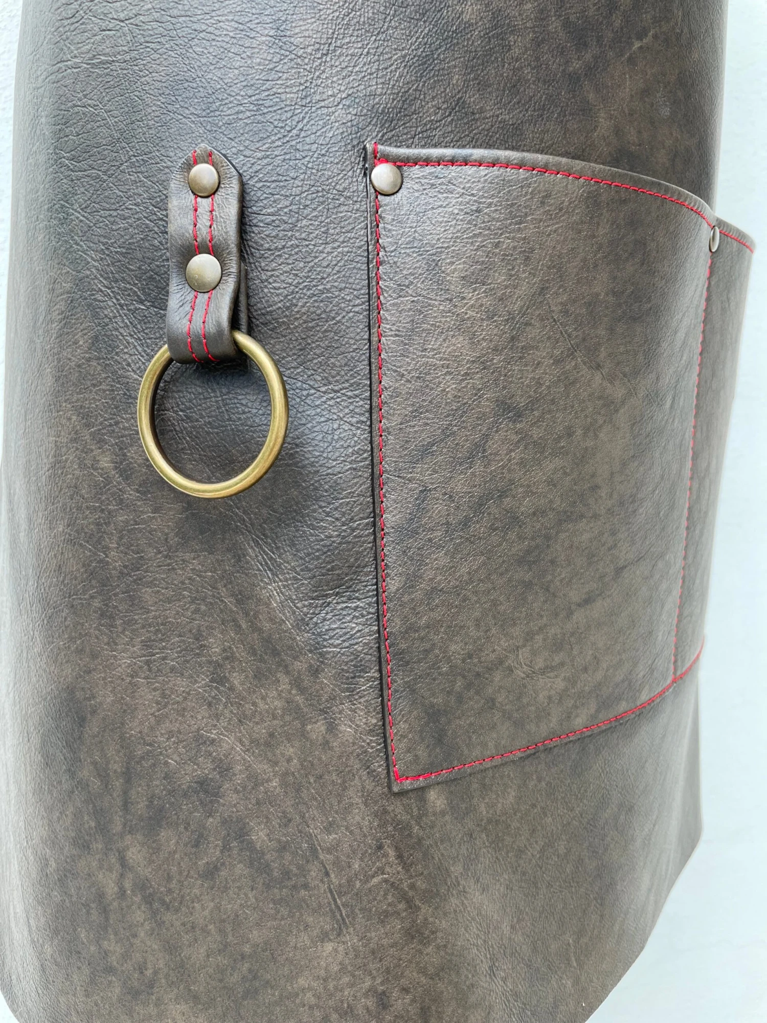 Il Grembiule T-Bone x BBQ LAB è un concentrato di eleganza e perfezione: vera pelle color rame con cuciture a contrasto rosse, patch frontale BBQ LAB, allacciatura scapolare che ti permette di indossare il grembiule anche molte ore senza fastidi, porta straccio laterale ed ampia tasca frontale.