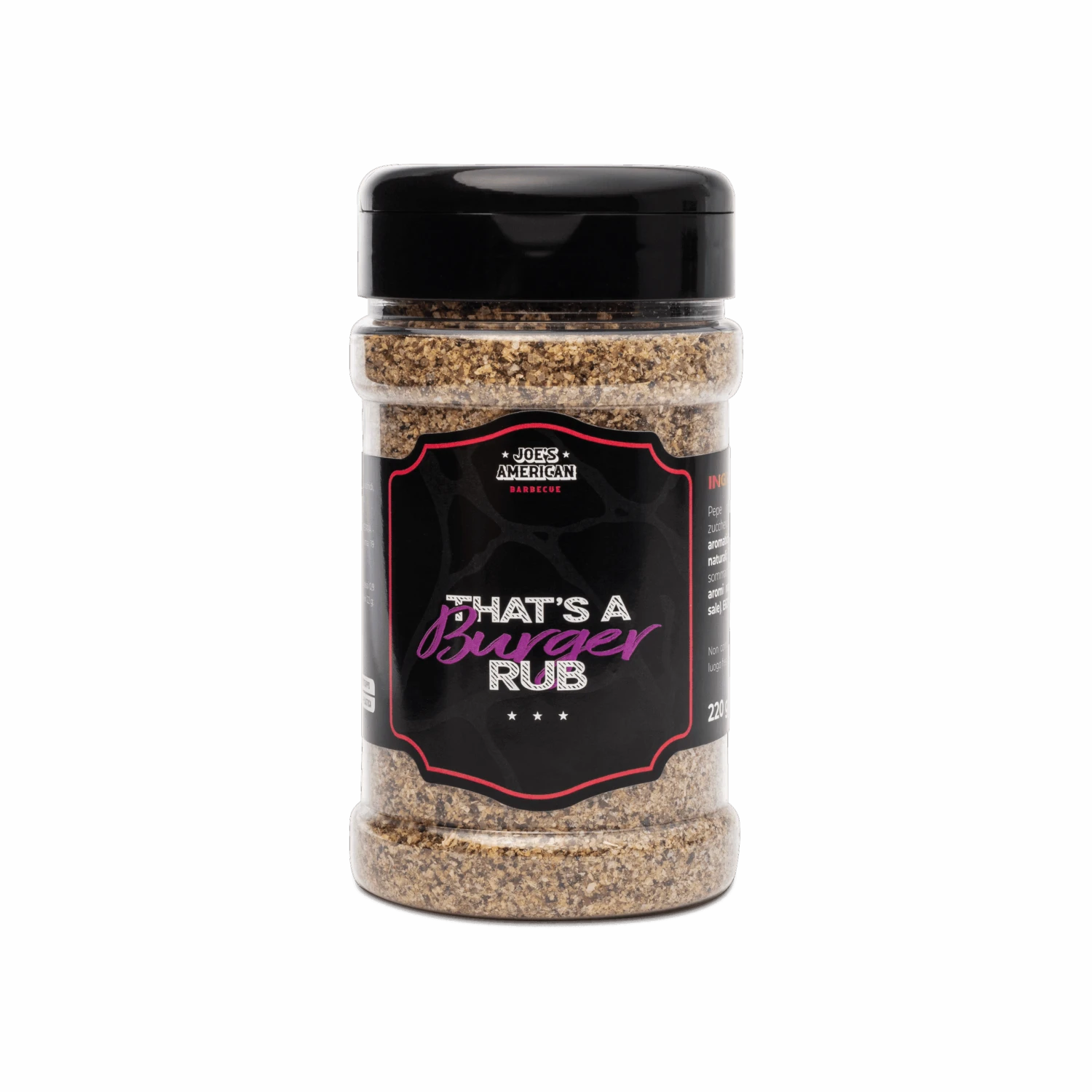 Ingredienti: pepe nero granuloso, cipolla granulare, zucchero di canna, sale, aroma midollo, pepe cubebe, sommacco, aroma bacon, destrosio, aromi naturali di affumicatura, E621.