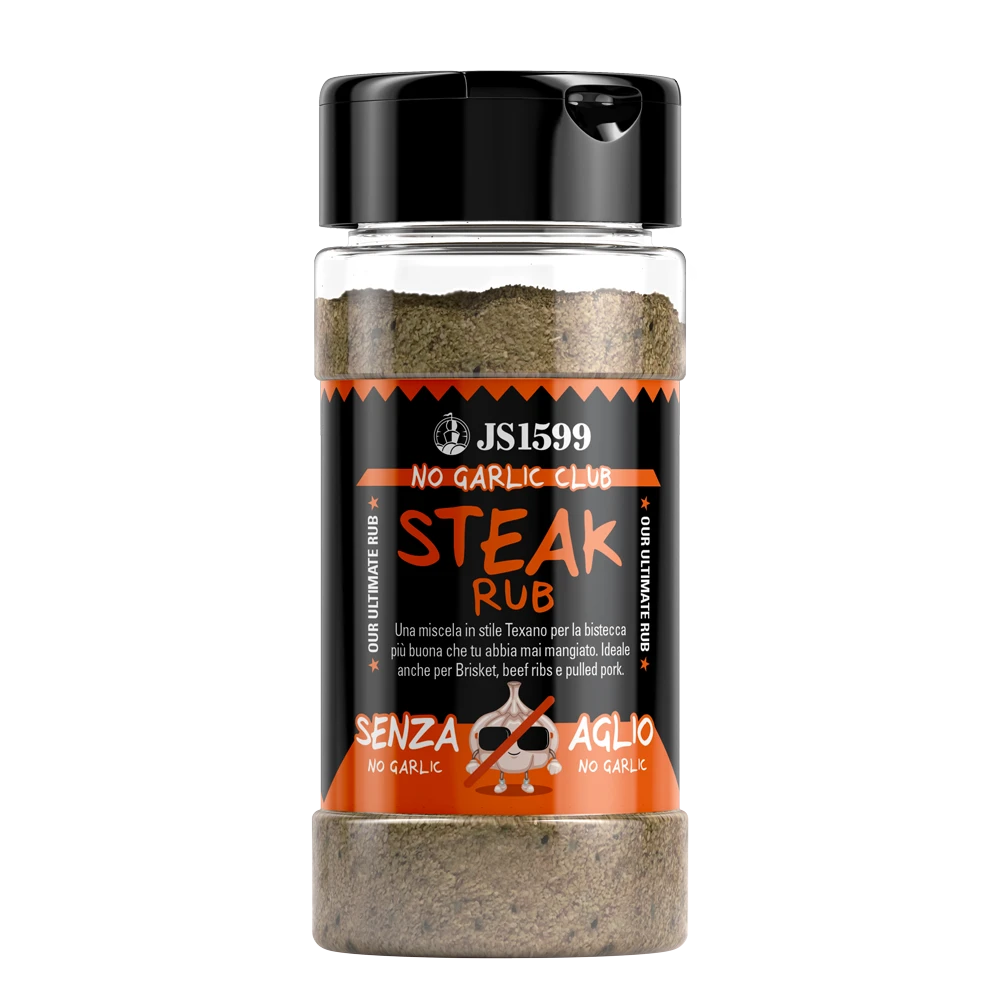 Eleva le tue bistecche ad un livello sorprendente con il nostro Rub STEAK, un prodotto di punta della nostra linea “NO GARLIC CLUB”. Questo rub senza aglio è stato sviluppato appositamente per chi cerca un gusto autentico di barbecue senza la presenza dell’aglio.