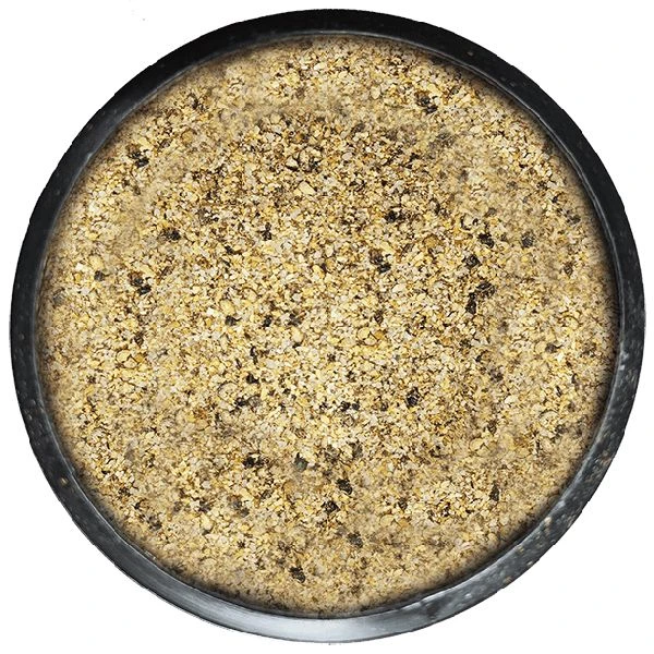 Come dice lo stesso nome, alla sapidità del sale da kosherizzazione e all’aglio granulare di prima scelta, si accompagna tradizionalmente il sapore speziato, caldo e corposo del Pepe Nero.
