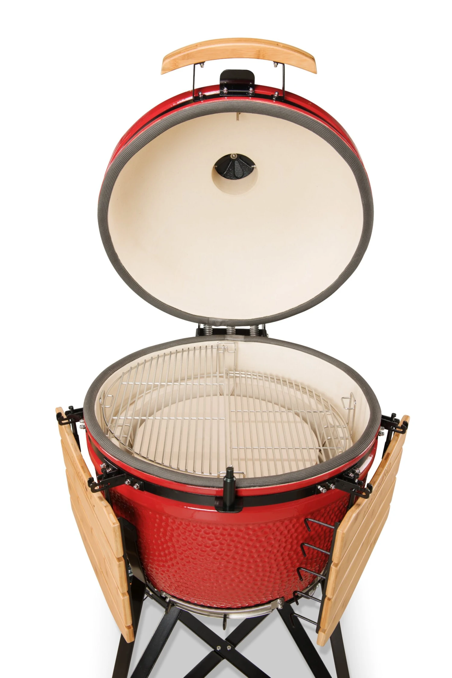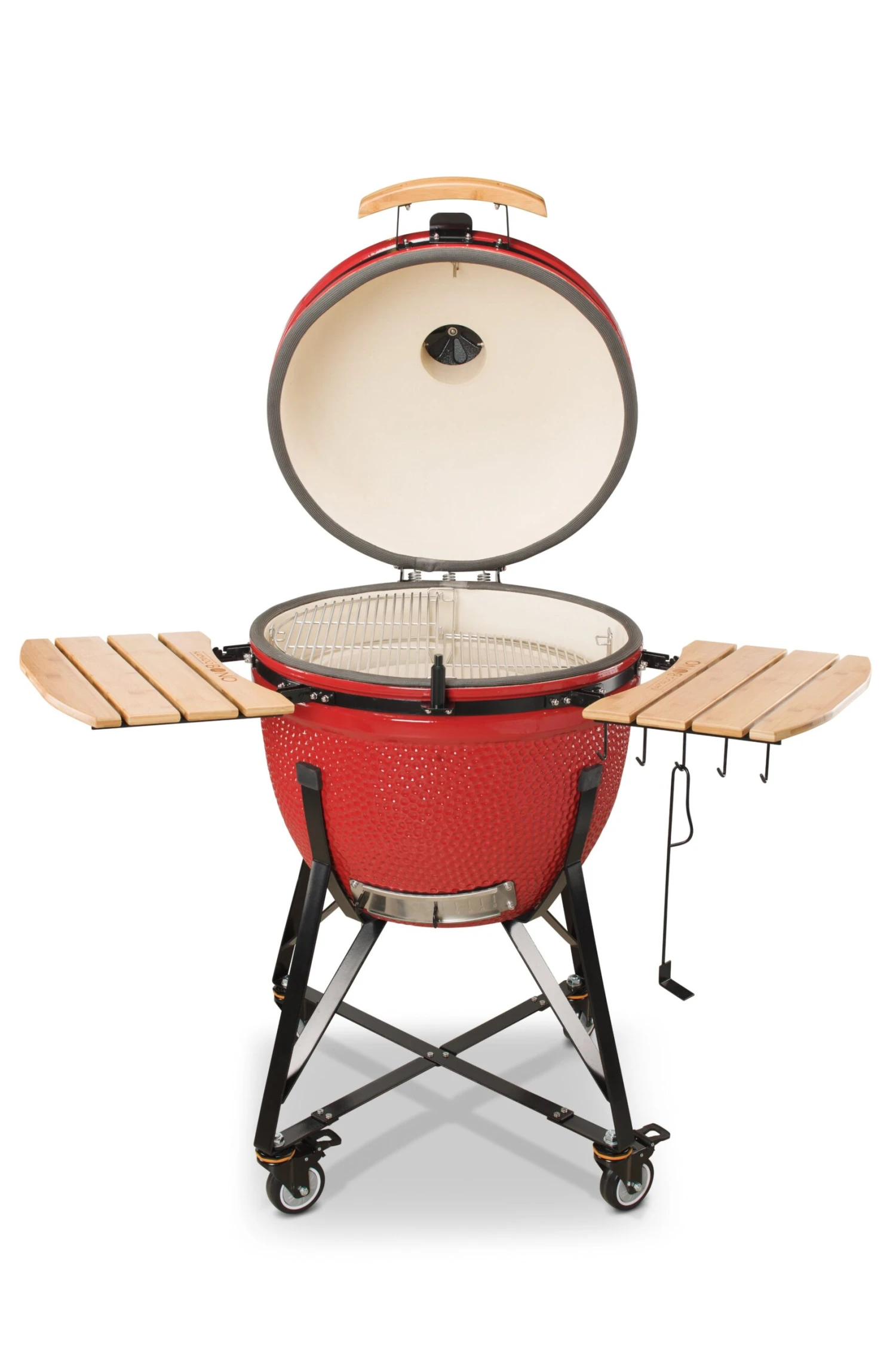 Questo modello consente di godere di tutti i vantaggi dei dispositivi Kamado BONO in quanto è compatibile con la maggior parte degli accessori, come la pietra per pizza, o il nostro set in ghisa composto da griglia e piastra a mezzaluna.