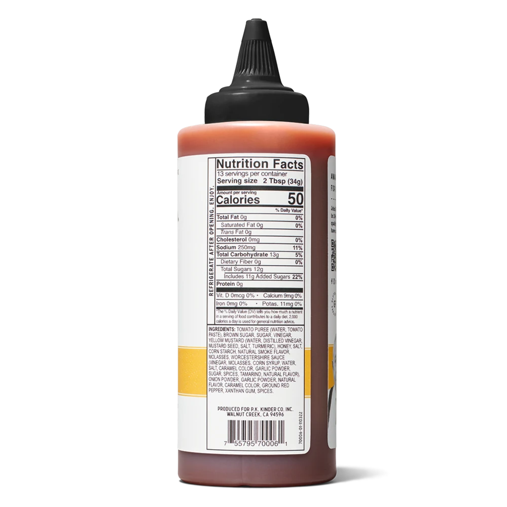 La salsa bbq al miele firmata Kinder’s è realizzata con pomodori di altissima qualità accompagnati da una nota dolce data dal miele e da una ricca miscela di spezie per un risultato leggermente affumicato.