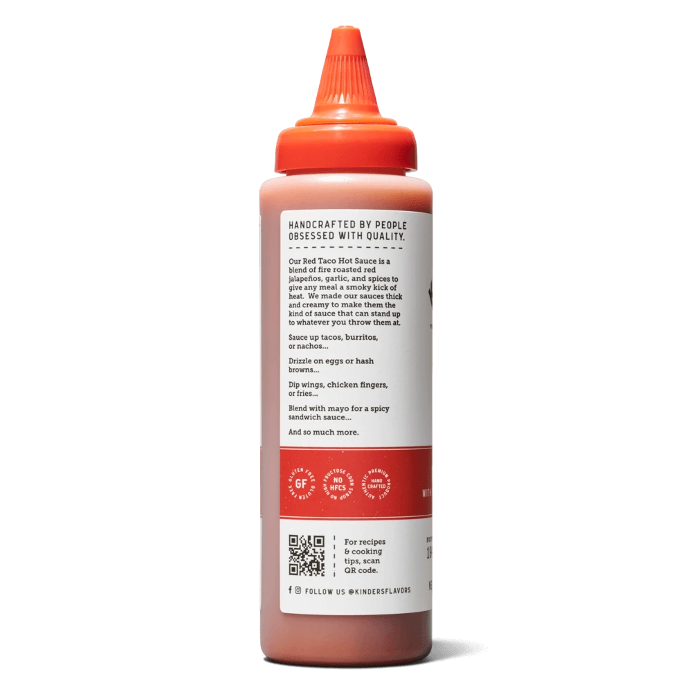 La salsa piccante Red Taco firmata Kinder’s è una miscela di jalapeño rossi arrostiti al fuoco, aglio e spezie che daranno ad ogni piatto un tocco piccante e affumicato.