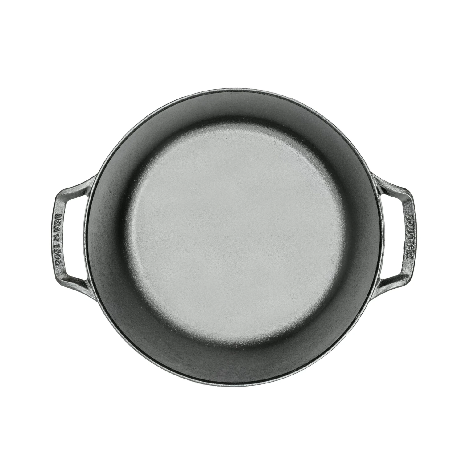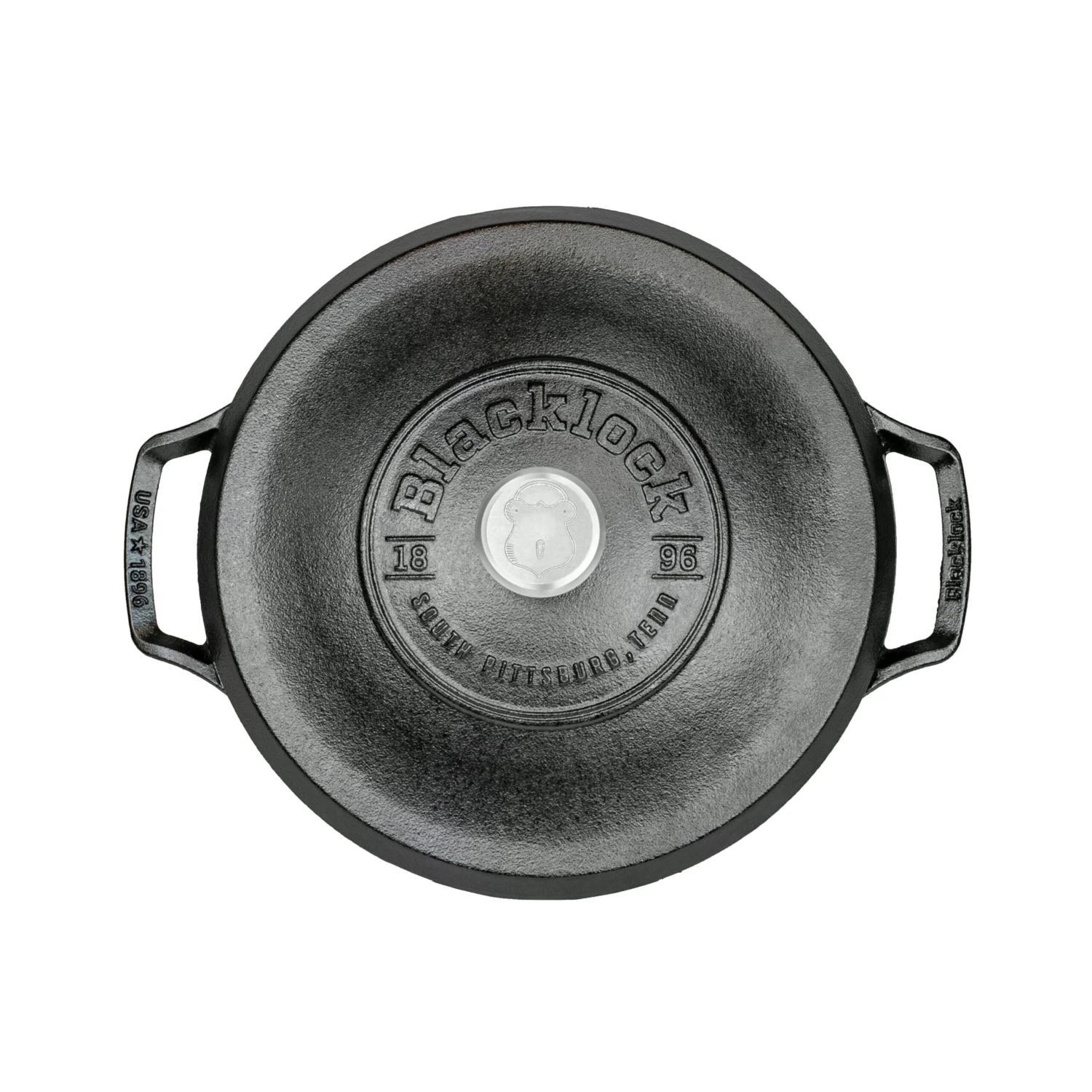 Blacklock & Triple Seasoned™ La linea Blacklock prende il nome dalla fonderia originale di Lodge Cast Iron. L’intera linea Blacklock è caratterizzata da una finitura triple seasoned™, pretrattata con tre strati di olio naturale per una finitura naturale e antiaderente pronta all’uso. Sapore eccezionale e pulizia semplificata. Le pentole Blacklock sono resistenti e adatte a qualsiasi piano cottura, forno, grill o fiamma libera. Nuovo design leggero in ghisa sottile progettato per sollevare, trasportare e maneggiare con facilità le pentole. Le maniglie e le contromaniglie sono state allungate e rialzate, in modo da rimanere lontane dal calore.