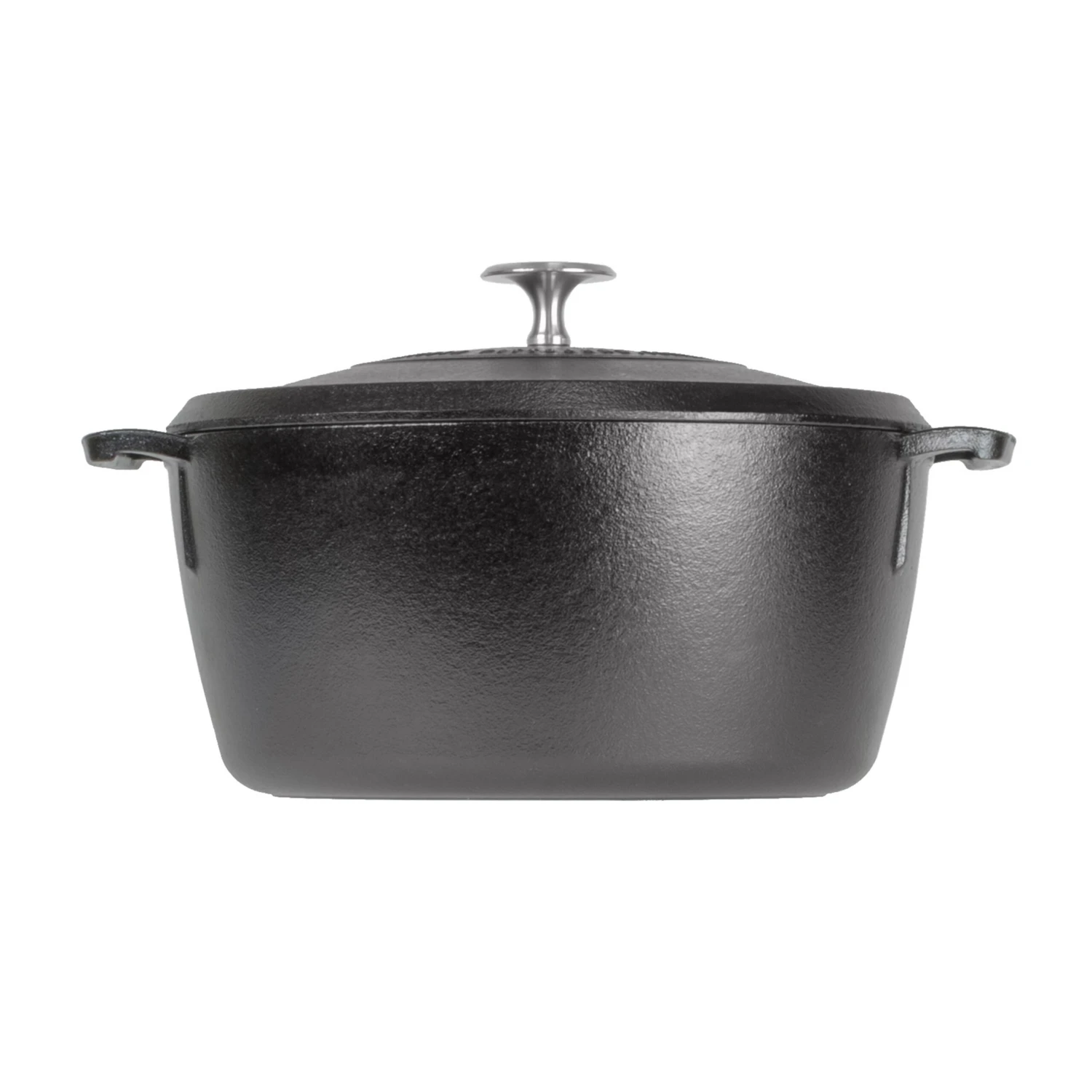 Casseruola in ghisa leggera e maneggevole con nuova finitura triple seasoned™ e rivestimento antiaderente. Nuovo pomello rialzato sul coperchio in allumino ad alta resistenza.