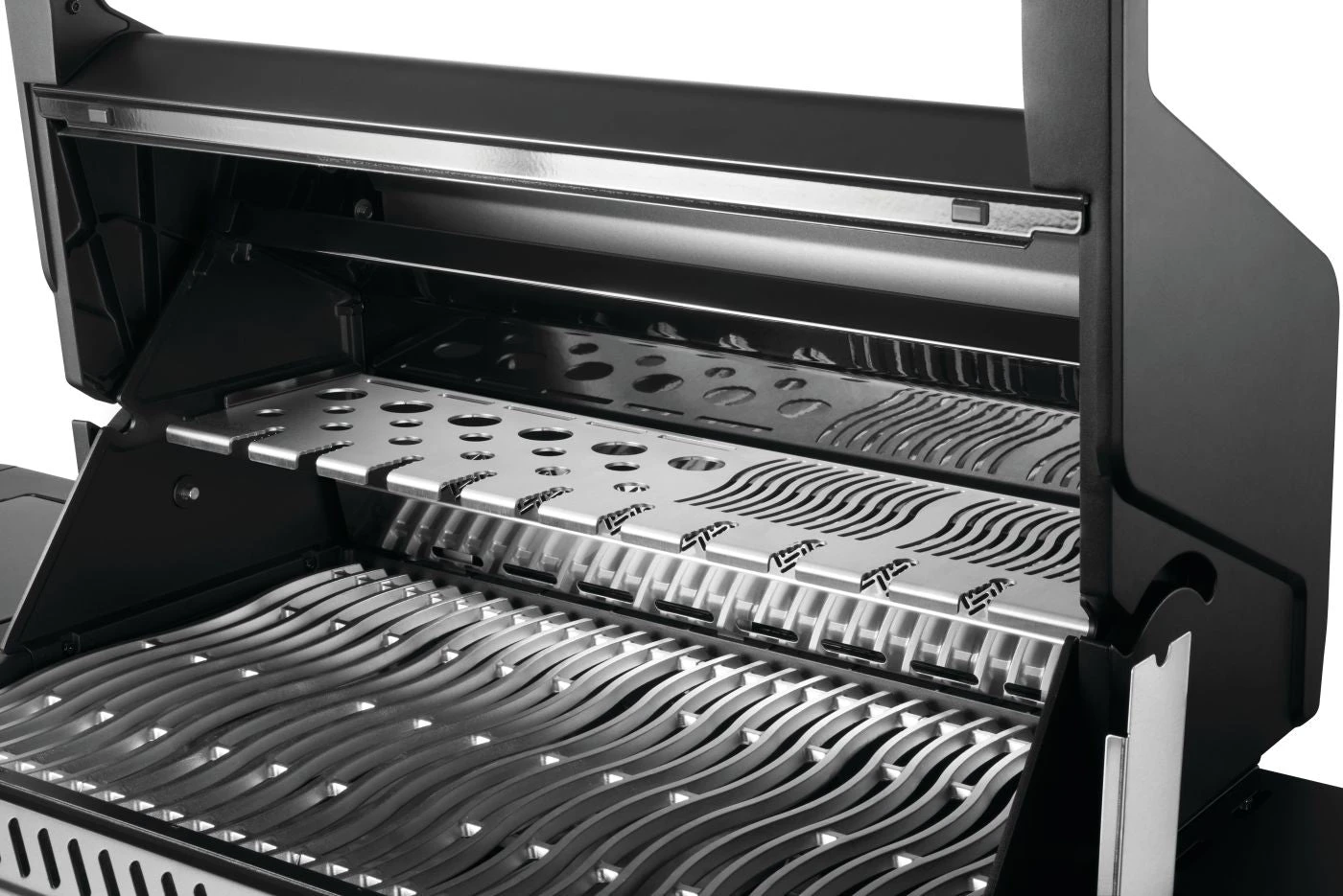 Il Phantom Prestige 500 ha delle griglie uniche, una speciale fusione di INOX, vi garantirà grillmark senza precedenti semplificando anche le cotture degli antipasti alla griglia. La SIZZLE ZONE riposta sul ripiano laterale ti permetterà di comporre piatti unici mentre cucini sulla griglia.
