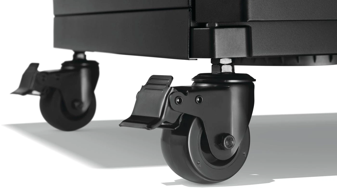 - Ripiani laterali in acciaio inossidabile con ganci per utensili.