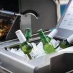 - Ripiani laterali in acciaio inossidabile di alta qualità con portabibite integrato e cestello per ghiaccio / marinatura con tagliere, portasciugamani cromato e ganci utensili