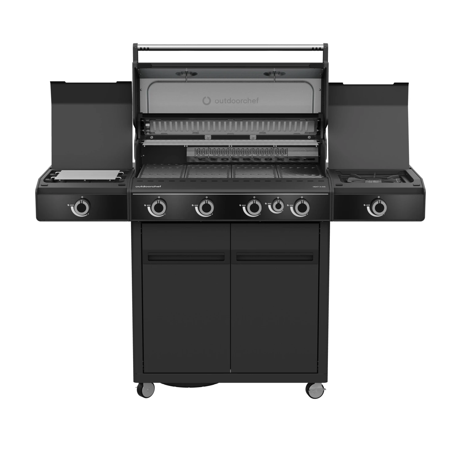 Il barbecue a gas HEAT X-445 RB è accattivante, elegante, ricco di funzionalità, spazioso e comodo. Grazie a questo barbecue potrai ampliare al massimo il tuo curriculum culinario potendo viaggiare dalle cotture low & slow alle cotture dirette, dall’affumicature alla cottura della pizza.
