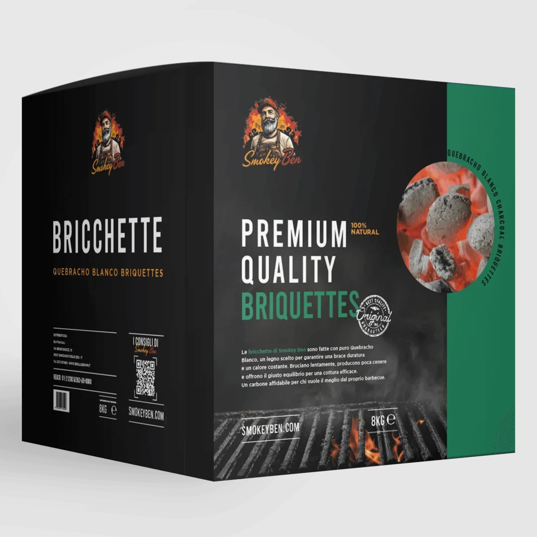 Le bricchette di Smokey Ben sono l’opzione ideale per chi cerca non solo qualità nella grigliata, ma anche facilità di utilizzo e accensione. Prodotte dal legno di Quebracho Blanco, un albero noto per la sua straordinaria durezza e densità, queste bricchette offrono una performance di cottura eccezionale. Si distinguono per la loro alta densità, che assicura una lunga durata di combustione e un calore costante e intenso.