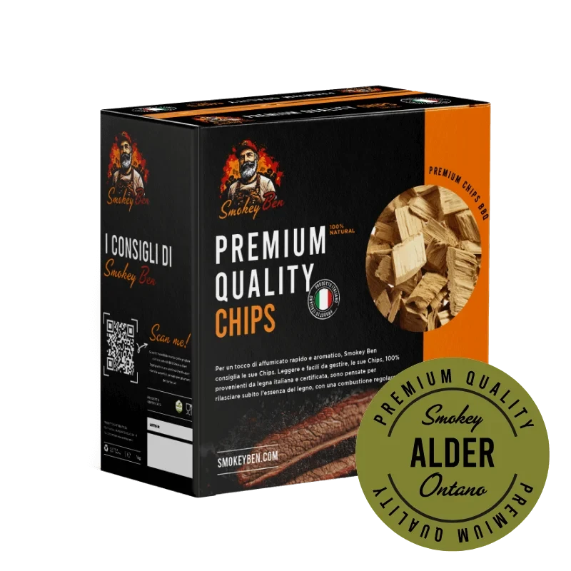 Le chips di Smokey Ben sono realizzate con legno vergine di origine italiana, selezionato per garantire una combustione rapida e un fumo ricco di aromi naturali.
